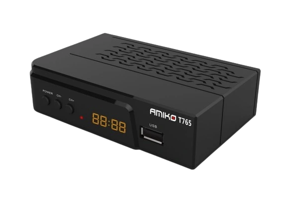 Tuner Amiko T765 to urządzenie umożliwiające odbiór naziemnej telewizji cyfrowej w standardzie DVB-T jak również DVB-T2. Posiada wiele funkcji multimedialnych, dzięki którym oglądanie telewizji cyfrowej będzie jeszcze przyjemniejsze. Urządzenie wyposażone jest także w funkcję kontroli rodzicielskiej, a także m.in. EPG, Time Shift, VBI oraz INFO. Dekoder umożliwia odbiór kanałów w jakości full hd.