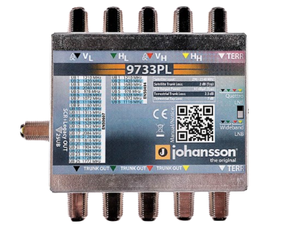 Multiswitch Unicable II 5/1 Johansson 9733PL to urządzenie, które oferuje możliwość połączenia sygnału telewizji naziemnej i satelitarnej i podzielenia go do 16 punktu odbioru (odbiorników). Multiswitch posiada 4 wejścia dla konwertera satelitarnego typu Quattro.