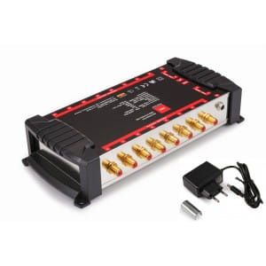 Zasilanie multiswitcha odbywa się za pośrednictwem zewnętrznego zasilacza (w zestawie) dzięki czemu wyeliminowane jest zjawisko zwiększonej temperatury pracy będące częstym powodem uszkodzeń urządzenia.