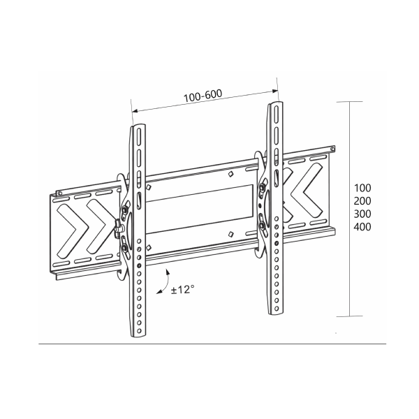 maksymalny udźwig: 50 kg pasuje do telewizorów o przekątnej ekranu od 37" do 70" - VESA max: 600 x 400 [mm] odległość od ściany: 8 cm regulacja kąta nachylenia: +/- 12 stopni kolor czarny (uchwyt malowany proszkowo)