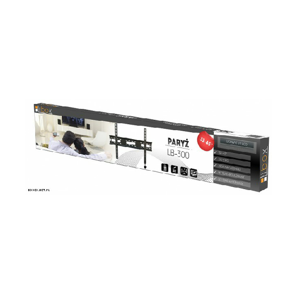 Uchwyt do telewizora PARYŻ LB-300 LIBOX to wysokiej jakości, stalowy uchwyt ścienny do telewizorów i monitorów LCD/LED o przekątnej ekranu od 32 do 65 cali. Dzięki nowoczesnej konstrukcji, uchwyt pozwala na powieszenie telewizora w odległości zaledwie 2 cm od ściany. Maksymalny ciężar telewizora to 50 kg. Wszystkie uchwyty LIBOX zawierają komplet śrub montażowych oraz instrukcję montażu w języku polskim.