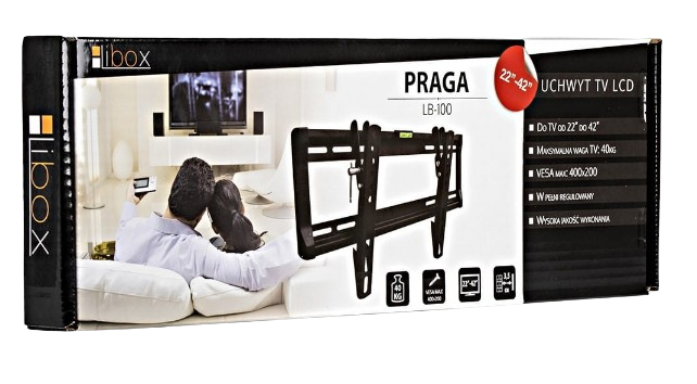 Uchwyt do telewizora PRAGA LB-100 LIBOX to wysokiej jakości, stalowy uchwyt ścienny do telewizorów i monitorów LCD/LED o przekątnej ekranu od 23 do 42 cali. Dzięki nowoczesnej konstrukcji, uchwyt pozwala na powieszenie telewizora w odległości zaledwie kilku cm od ściany. Maksymalny ciężar telewizora to 40 kg. Wszystkie uchwyty LIBOX zawierają komplet śrub montażowych oraz instrukcję montażu w języku polskim.