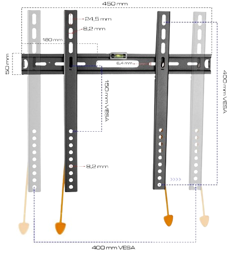 VESA 400x300 (w poziomie 400mm x w pionie 300 mm)